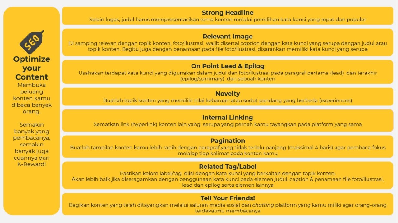 Tetapi, jangan khawatir. Kami akan memberikan teknik agar konten kamu mendapatkan views yang banyak dan tentunya jumlah K-Rewards yang kamu dapatkan bisa semakin meningkat.