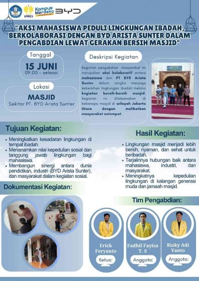 Aksi Mahasiswa Peduli Lingkungan Ibadah, Berkolaborasi Dengan BYD Arista Sunter Dalam Pengabdian Lewat Gerakan Bersih Masjid